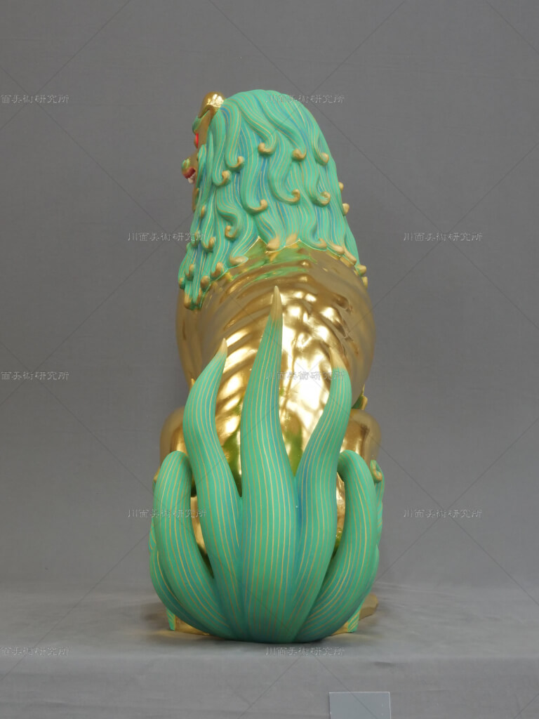 尻尾は獅子狛犬の体に合わせて立体的な形状で、木材を接ぎ合わせて新規に制作しました。