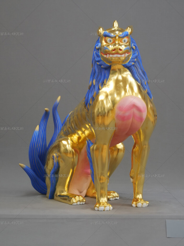 獅子狛犬、随身像ともに色鮮やかな姿に蘇り、無事に神社様へお納めいたしました。