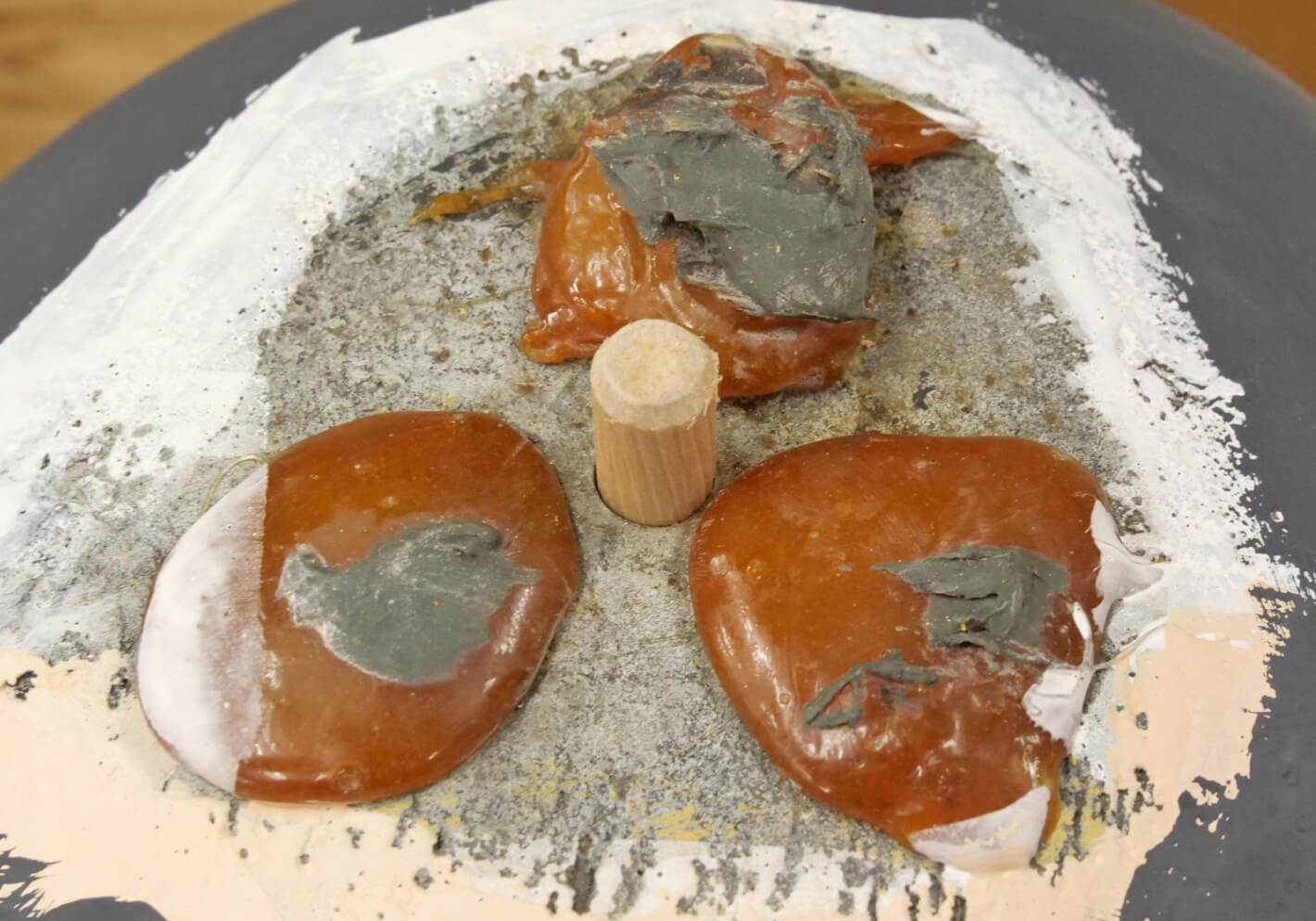 烏帽子や太刀等の持物の固定のため、ダボ等を差し込んで補強も行いました。
