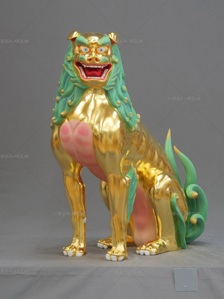 獅子狛犬、随身像ともに色鮮やかな姿に蘇り、無事に神社様へお納めいたしました。