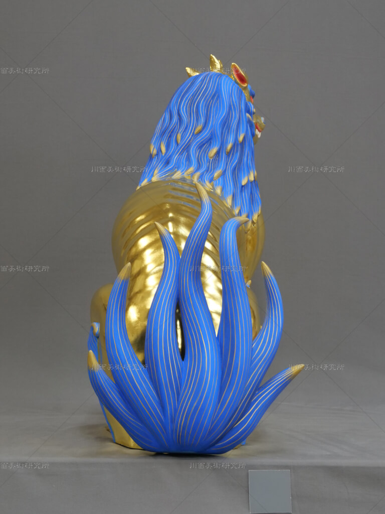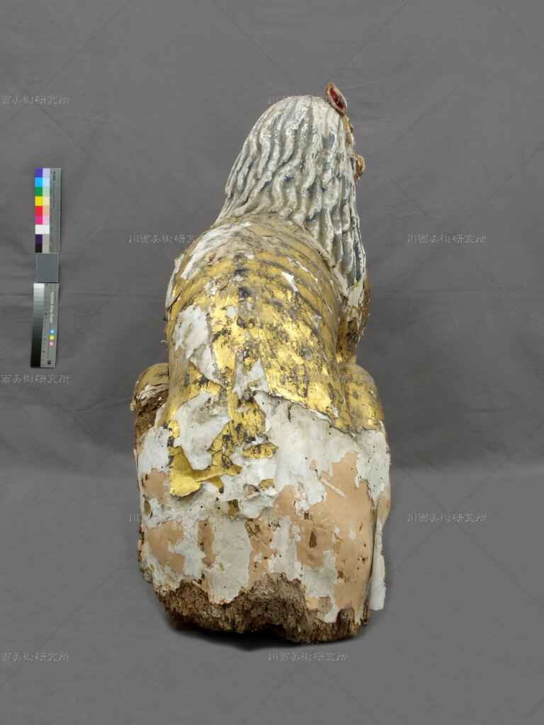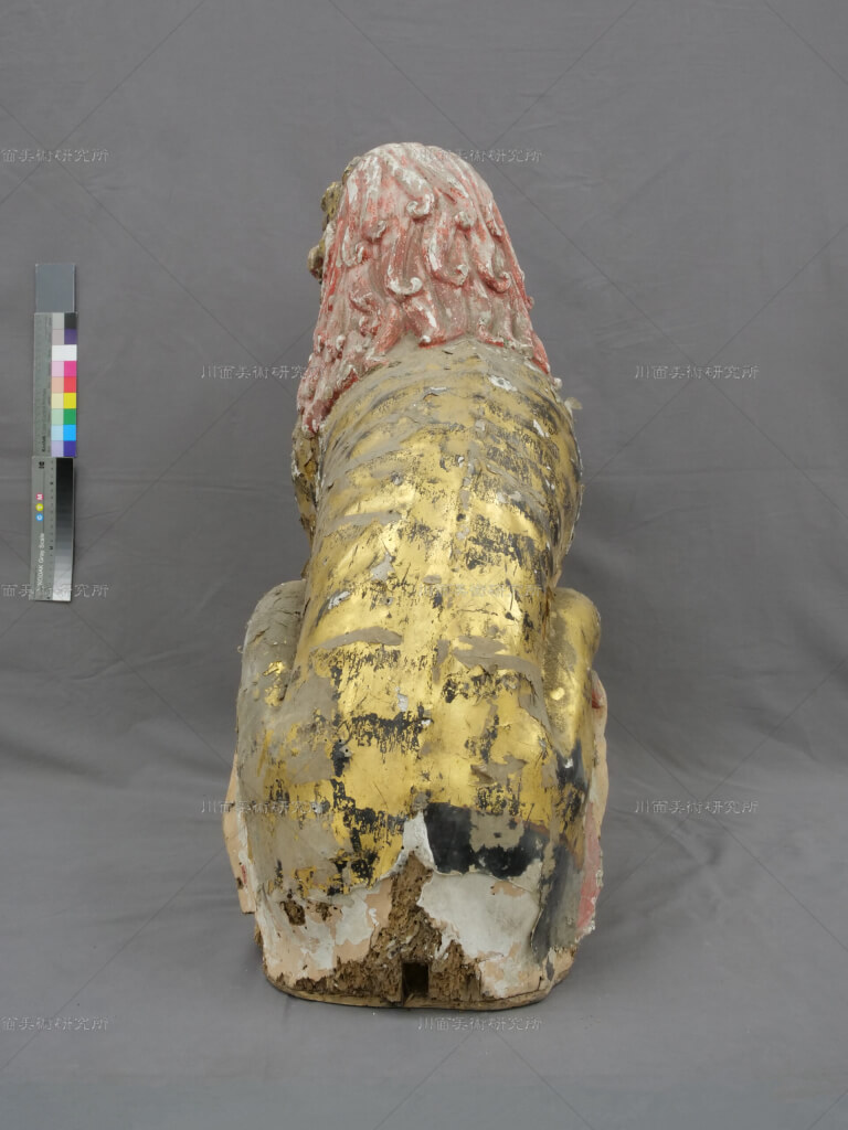 尻尾は獅子狛犬の体に合わせて立体的な形状で、木材を接ぎ合わせて新規に制作しました。